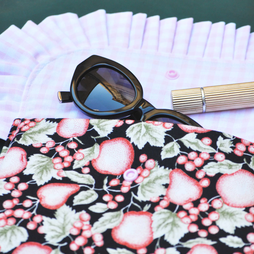 On aime les motif de cette pochette ! Des jolies fruits qui contrastent bien avec le fond noir, il a un petit côté rétro : A-DO-RABLE ! Un petit écrin pour y ranger maquillage, bazar de sac, …